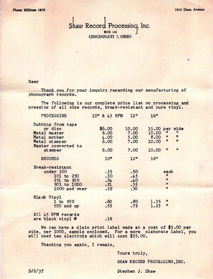 Go To Discography of all Shaw Pressings in our Database